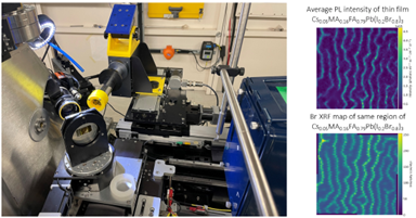 Showcasing I14 capabilities for X-ray fluorescence and diffraction scanning of perovskite materials.